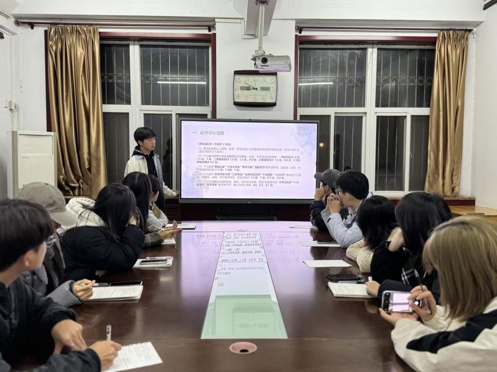 会议伊始,郭彦君围绕“团支部书记必备知识技能”展开讲解,涵盖团员信息统计、智慧团建等基础团务的操作方法与标准。侯褚佳就“云支教”、“三下乡”社会实践和“团日活动”进行具体讲解,重点明确了主题团日的组织形式与要求,鼓励各团支部结合专业特色策划活动。陈囿锦针对“第二课堂”学分内容、活动报名以及加分细则等关键内容进行培训,并实操演示了第二课堂系统注册登录、学分申请、进度查询等全流程操作。